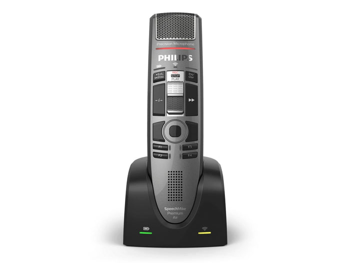 Desktop dictation goes mobile with patented lossless speech technology. The SpeechMike Premium has reached its highest stage of evolution. Benefit from all the advantages of the industry-leading dictation microphone without the constraints of a cable. Record your voice using a premium decoupled studio-quality microphone with a built-in noise reduction filter and achieve exceptional speech recognition results. Thanks to the revolutionary patented lossless speech technology, the SpeechMike Premium Air offers maximum mobility without compromising. The device achieves the same high speech recognition performance as the standard SpeechMike Premium with a cable.